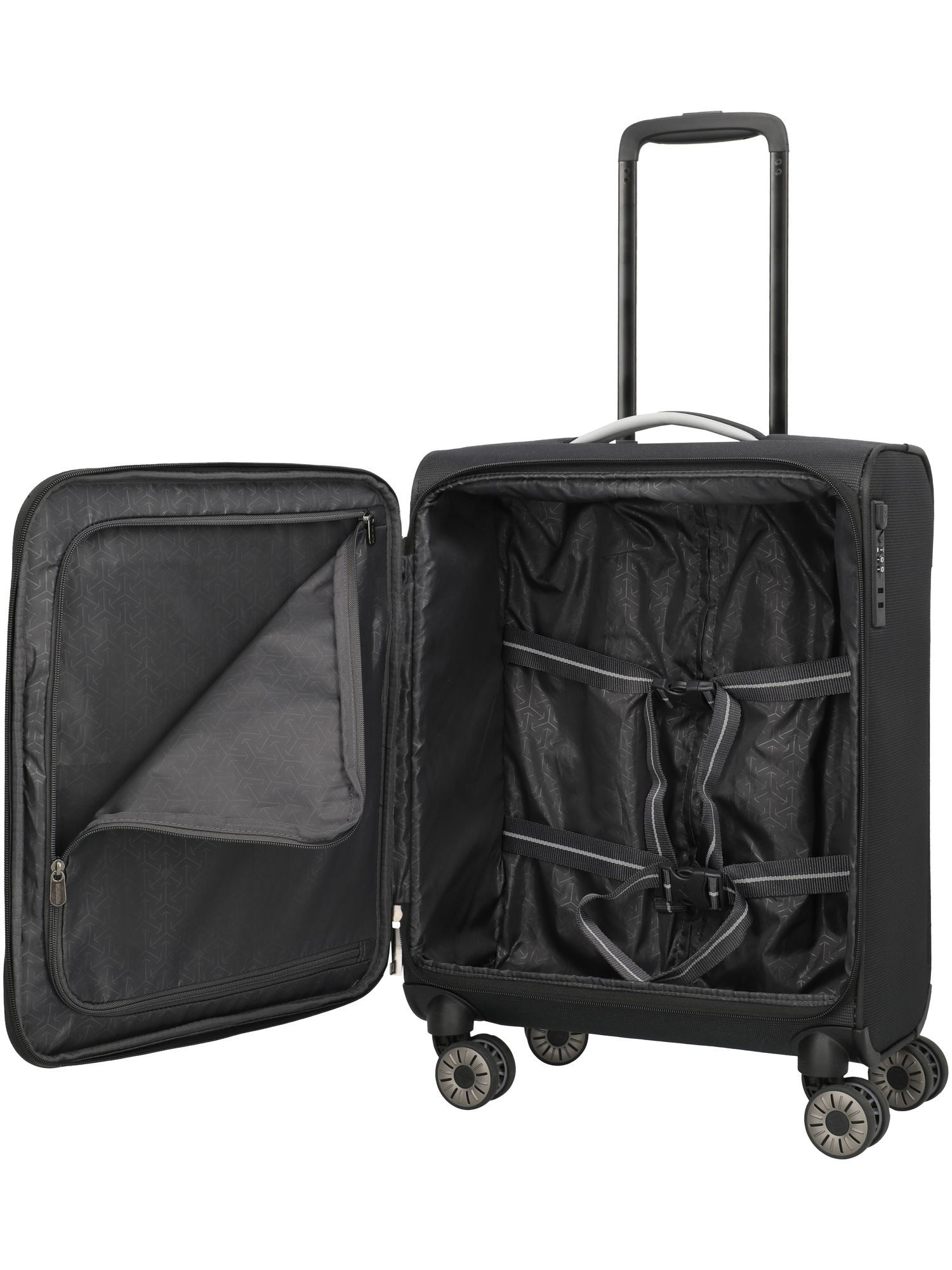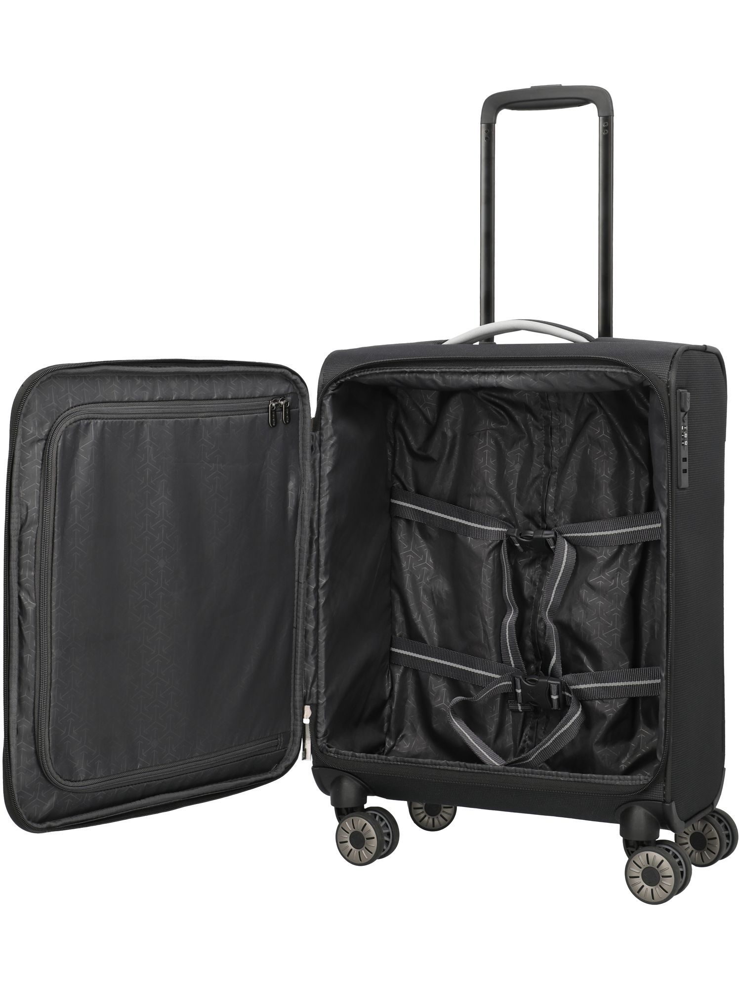 - Praktische Handgepäckmaße, Airlines: Condor, Ryanair (gegen Aufpreis), Integriertes Schloss, Schwarze Reflexstreifen, Leise travelite Rollen, Einstellbare Packgurte innen / Gurtband Packgurte, Trennwand