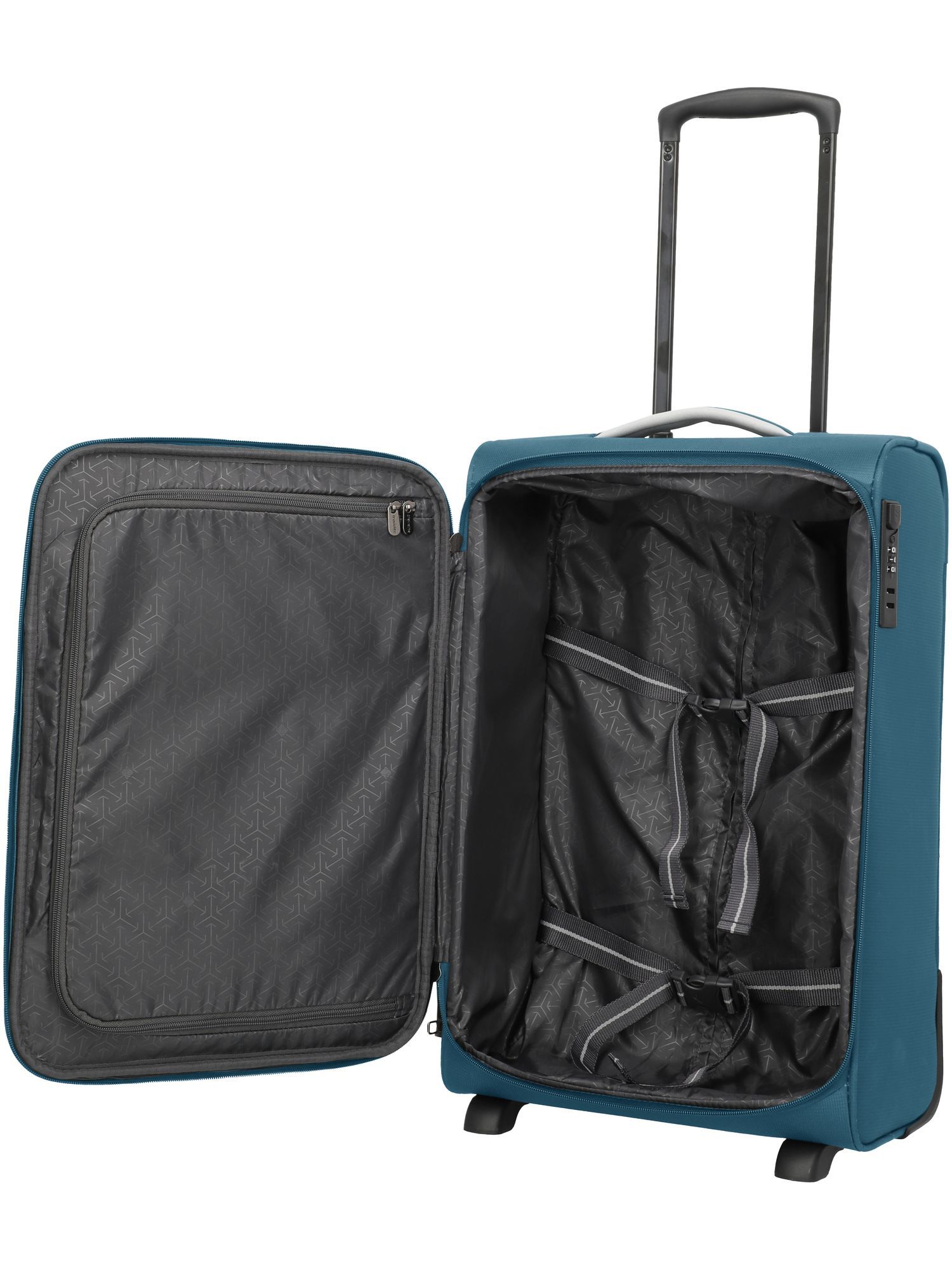 - Praktische Handgepäckmaße, Airlines: Air France, KLM, ITA, Integriertes Schloss, Schwarze Reflexstreifen, Leise travelite Rollen, Einstellbare Packgurte innen / Gurtband Packgurte, Trennwand