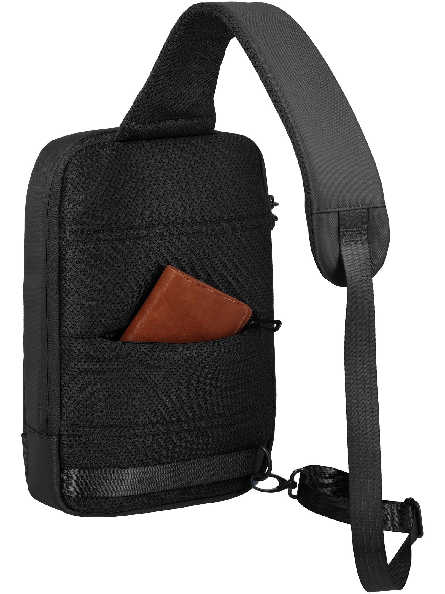 - 2 Hauptfächer und eine Vortasche, Gepolstertes Rückenpanel, Verstellbarer, gepolsterter Schultergurt, Verstecktes Sicherheitsfach am Rücken, Reißverschluss zum Einhaken für extra Sicherheit